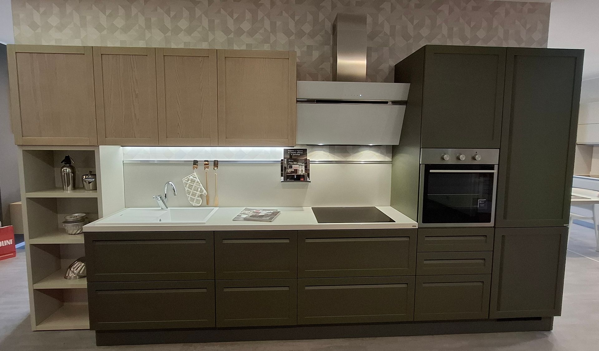 Finiture: Verde Minerale opaco e legno Arena