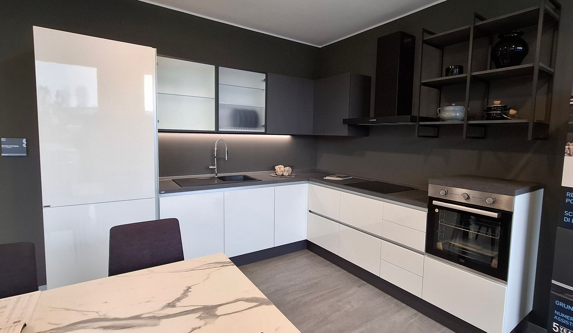 Finiture: Decorativo bianco e gres nero greco Laminam