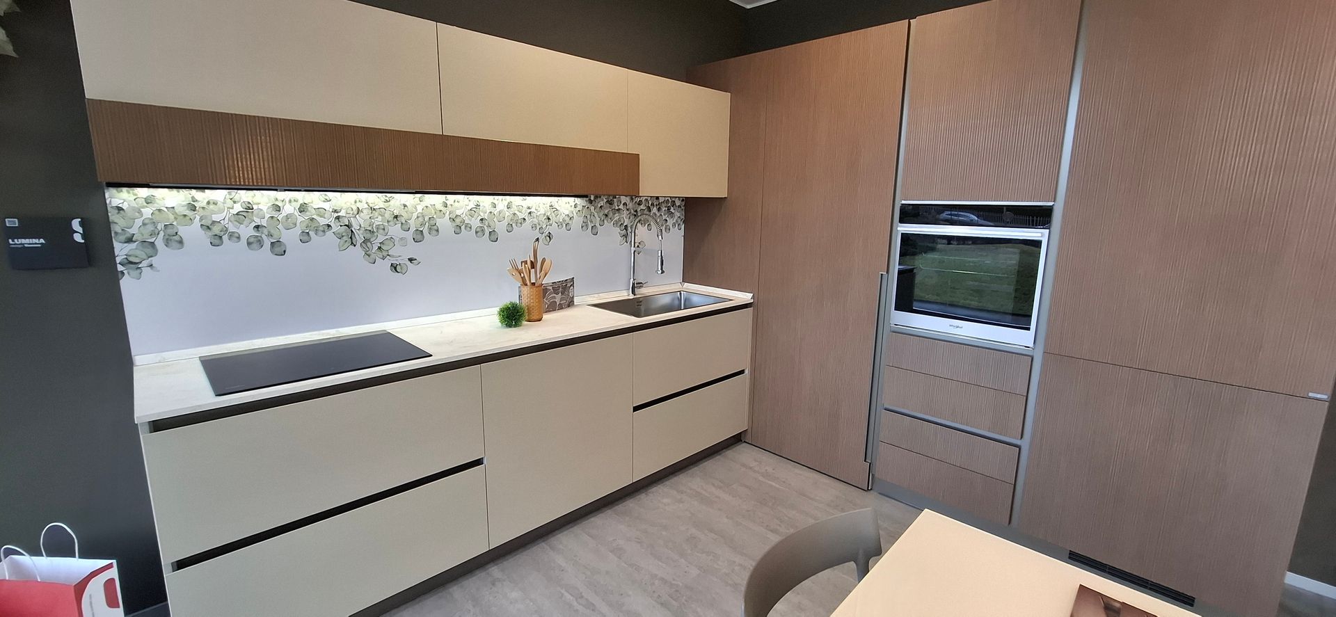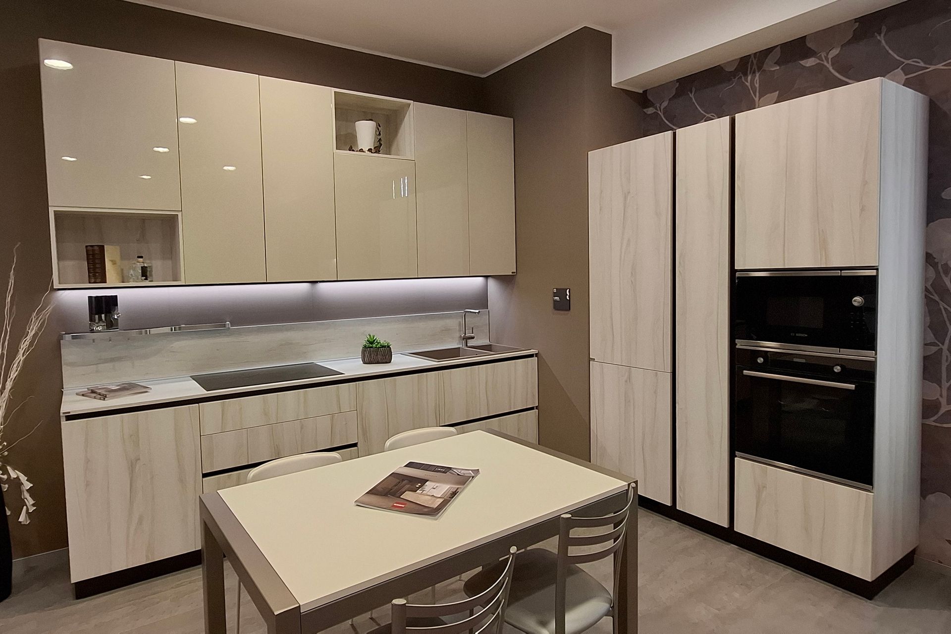 Finiture: Laminato effetto legno e Laccato lucido tortora